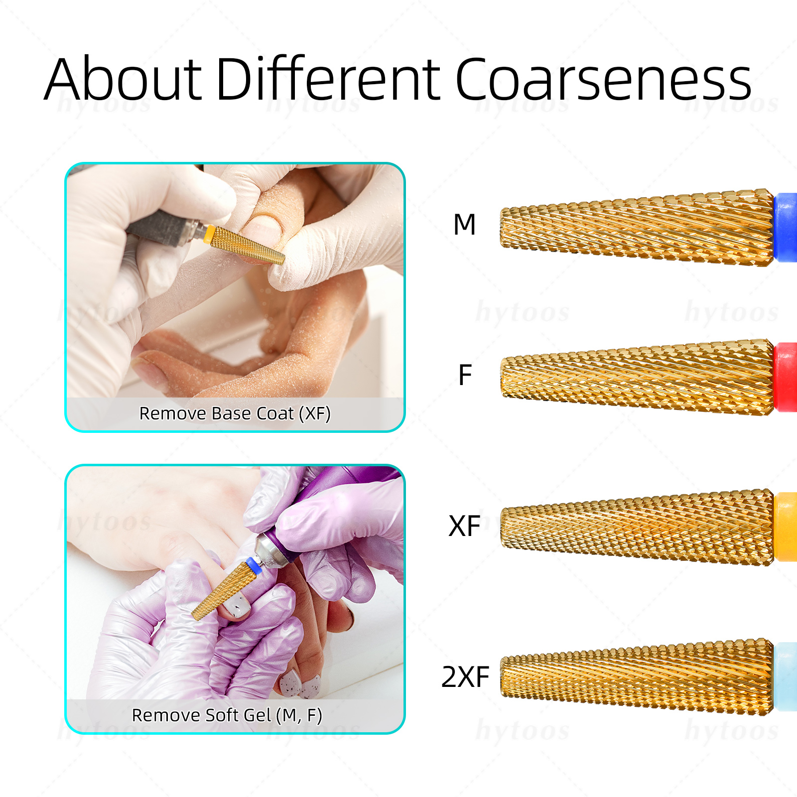 It offers versatile functions for left and right hand use, with teeth levels 2XF, XF, F, M, ensuring fast removal of acrylics and gels.