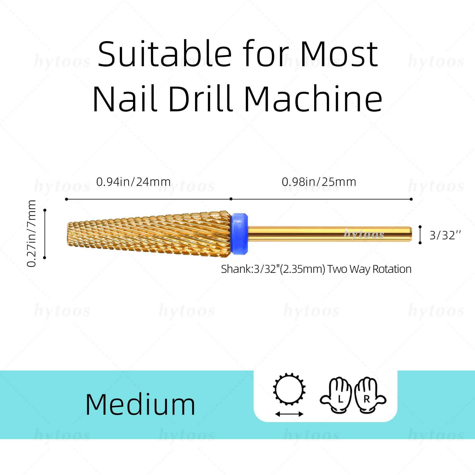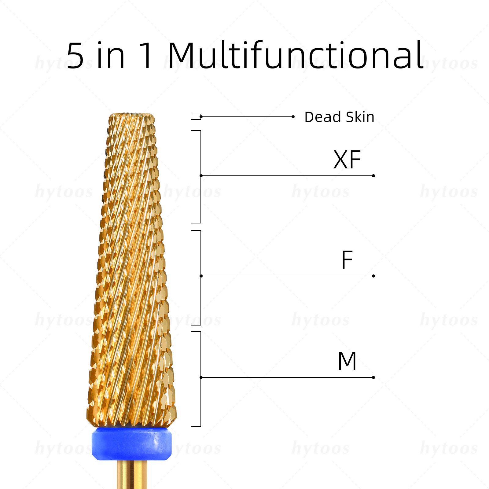 HYTOOS 24mm Super Long 5 in 1 Nail Drill Bits feature a long tapered design with high tungsten carbide material, available in Gold color.