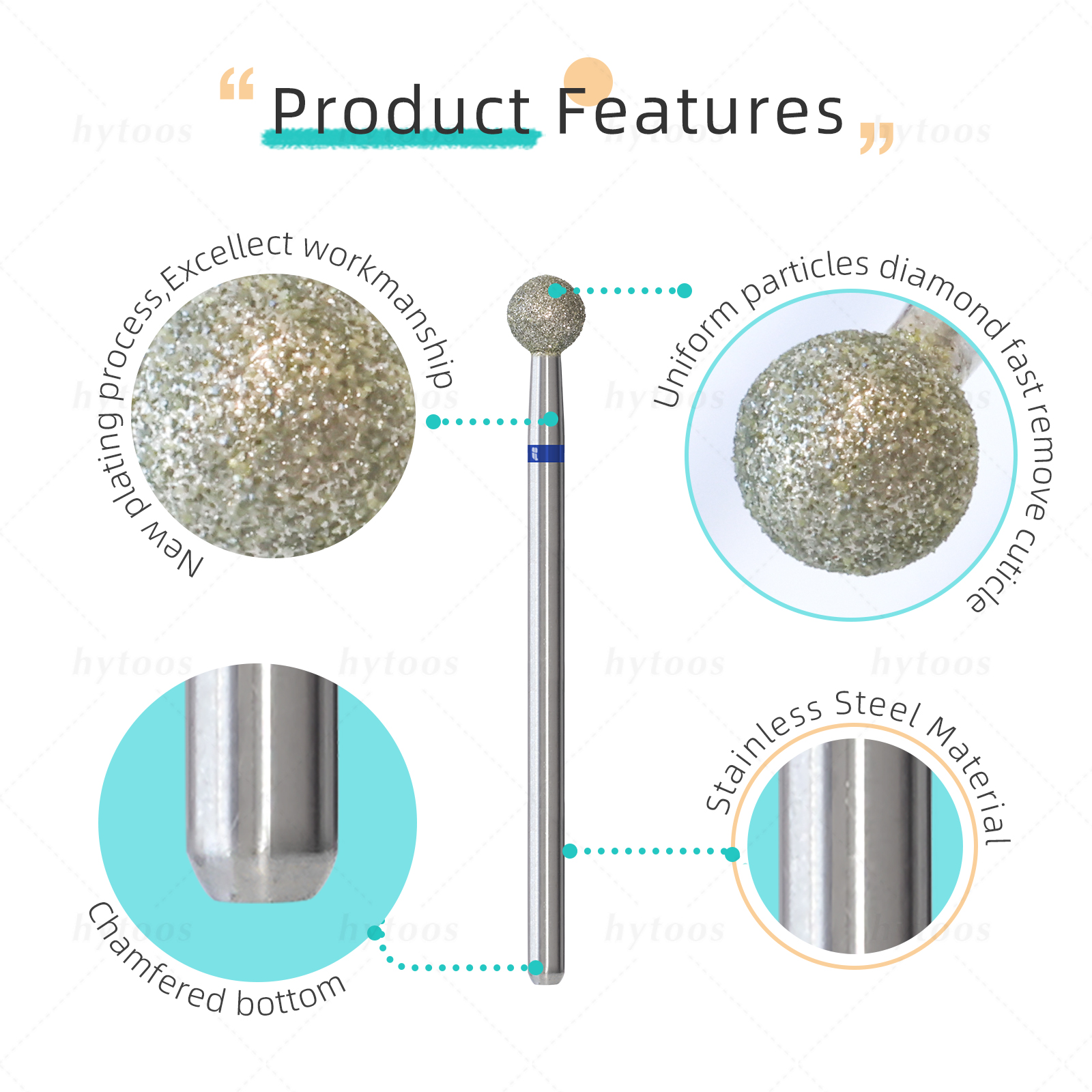 HYTOOS 5mm Ball Cuticle Clean Nail Drill Bit Russian Diamond Nail Bits