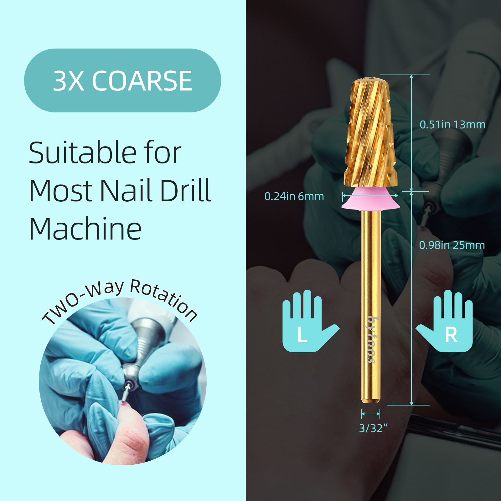 HYTOOS Titanium Safety Nail Bits, Rounded Top, Tapered Carbide Nail Drill Bit